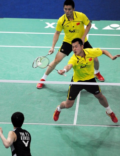 新浪体育讯 北京时间5月11日消息,2010年汤姆斯杯展开小组赛最后一轮的争夺,中国队与韩国队争夺A组头名。林丹首场直落两局击败朴成奂打响头炮,蔡赟/傅海峰、陈金和鲍春来均以2比0分别击败申白喆/郑在成、孙完虎和李炫一,而郭振东/徐晨以1比2不敌柳延星/高成炫,中国队以4比1战胜韩国队排名A组首位。D组的印度队击败澳大利亚队排名小组第二出线。