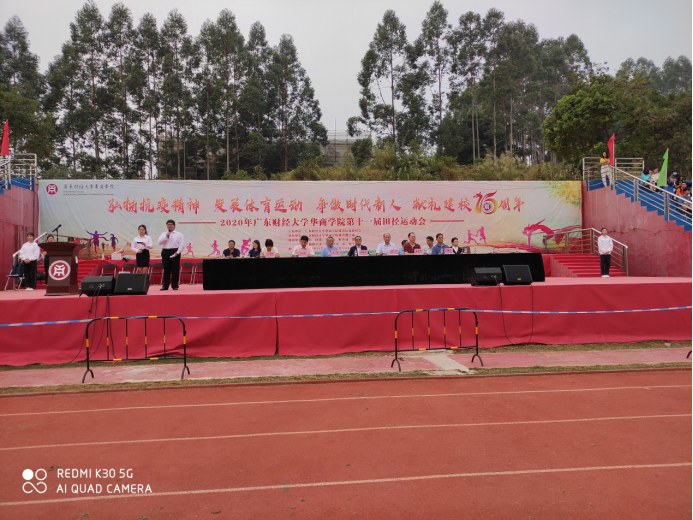 2020年11月20日8:00,广东财经大学华商学院第十一届田径运动会在学校田径场隆重开幕。