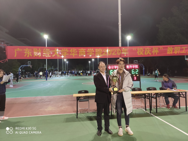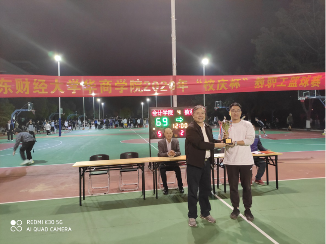 在硕果累累的金秋时节,学校即将迎来建校15周年校庆活动,由学校工会委员会主办的“校庆杯”教职工篮球赛于12月8日在学校篮球场落下帷幕。学校党委书记苏宁,会计学院院长陈美华、数据科学院院长韩兆洲、体育教学部副主任徐振文以及体育教学部老师出席本次比赛闭幕式并为获奖单位颁奖。