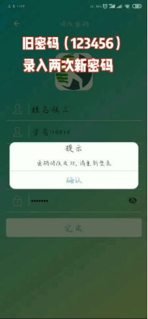 第三步:登录成功后,需要修改初始密码(录入初始密码123456),填入新密码(新密码要求字母与数字组合)。
