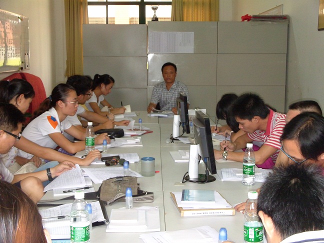 在会上,张主任首先传达了28日学院召开的院务议会精神,院务会上,陈院长对本学期整体工作的作了安排并提出相应的要求:本学期学院招生情况良好,比以往有所增加,总共招了5700多人;开学前的准备工作,保证教学秩序的正常进行,做好学位评估的各项准备工作,学生的管理和校园的规划,师资队伍的稳定,各系部门要对网站的内容及时进行更新。