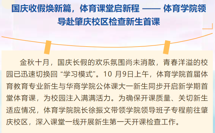 国庆收假焕新篇,体育课堂启新程 —— 体育学院领导赴肇庆校区检查新生首课