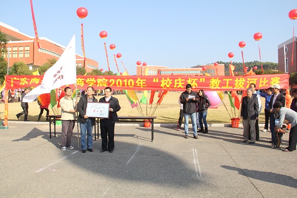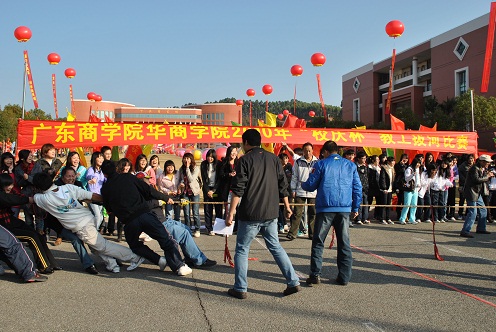 为了庆祝校庆五周年活动,及进一步推动华商学院的全民健身计划,促进学院教职工间的友谊与交流;增进凝聚力,增强教职工体质,丰富文体生活。由体育教学部承办的2010年“校庆杯”冬季教职工拔河比赛,于12月26日上午9:00在学院大门口举行,学院党委黄虹书记以及各系部主任、教师参加了本次活动。