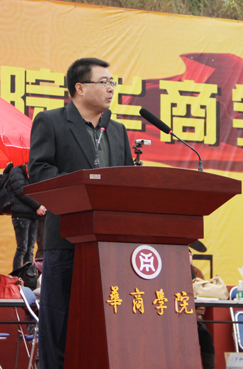 党委黄虹书记致开幕辞,他表达了对此次校运会筹备工作人员的衷心感谢,以及对全体运动员、教练员和裁判员的诚挚问候。他表示,此次运动会对加强学校体育工作,培养学生的各项素质具有重要作用。校运会的开展,有力地促进了学院学生的素质教育,加强了校园精神文明的建设,也提升了校园文化品位。同时他对参加运动会的运动员、裁判员以及工作人员提出了希望:一、希望运动员们在比赛的过程公平竞技、尊重对手、服从裁判,注重发挥团队精神。二、希望全体裁判员、工作人员忠于职守,遵循“公平、公正、公开”的竞赛规则,通力合作,保证各项赛程的顺利进行。各相关职能部门、组委会能切实做好各项工作。三、希望全体师生牢固树立安全意识,牢固树立“文明向上”的思想,以展现华商师生文明的精神风貌。