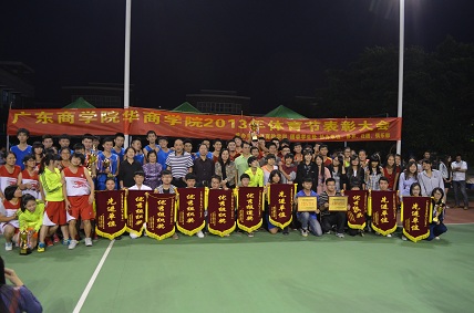 年10月29日下午五点三十分,广东财经大学华商学院2013年体育节闭幕式在篮球场顺利举行。出席本次闭幕式的嘉宾有学院党委苏宁书记、会计系马玉真主任、经济与金融系王德高主任以及工商管理系李建浔主任、体育教学部龚永平主任、徐振文副主任及其他老师。