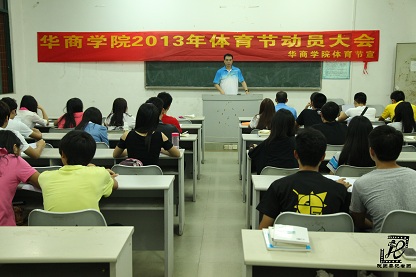 为深入贯彻落实《全民健身条列》,实施《广东省全民健身实施计划》(2011--2015)及《广东省群众体育工作方案》,进一步推动我院师生健身活动广泛开展,体育教学部组织了全院学生会、各系体育部长、体育协会及个俱乐部、记者团等学生组织社团的负责人召开了简单的华商学院2013年“体育节”动员大会。会上体育教学部龚永平主任做了讲话,首先介绍了本次“体育节”的目的和意义,以及有关事项,提出以此为契机,希望各系,各社团俱乐部、记者团组织做好宣传工作,共同搞好本次“体育节”活动,搞好学院的体育活动。