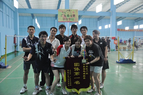 热烈祝贺我院羽毛球队在4月25日增城体育馆举行的增城高校第二届羽毛球联赛中,荣获团体第一名的好成绩。