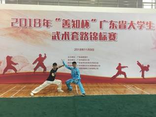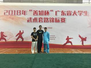 2018年“善知杯”广东省大学生武术套路锦标赛,于2018年9-11日在广州中医药大学举行。在学院书记的大力支持,体育教学部徐振文主任对武术队的帮助和指导下,以及体育部莫军老师为武术队训练工作付出的辛苦努力!体育教学部颜海滨老师带领广东财经大学华商学院武术队参加了此次比赛,经过激烈的比赛,薛杰浩获得了男子甲组自选太极剑第四名,自选太极拳第四名的好成绩!感谢领导们的大力支持!