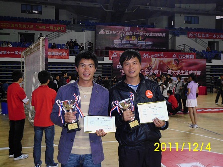 由广东省大学生联合会举办的2011年广东省大学生篮球联赛,我院女子篮球队获得第三名的好成绩,男子篮球队获得五名的好成绩。在此对他们表示祝贺。