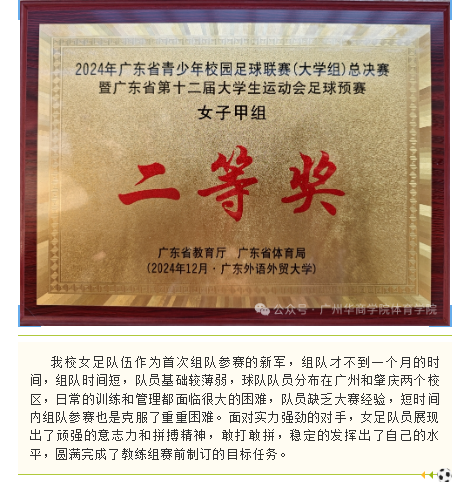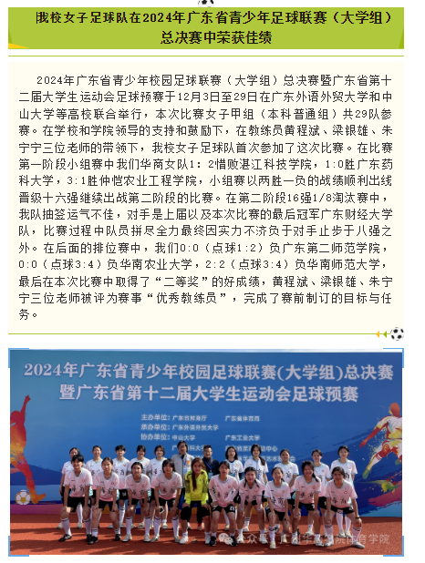 我校女子足球队在2024年广东省青少年足球联赛(大学组)总决赛中荣获佳绩
